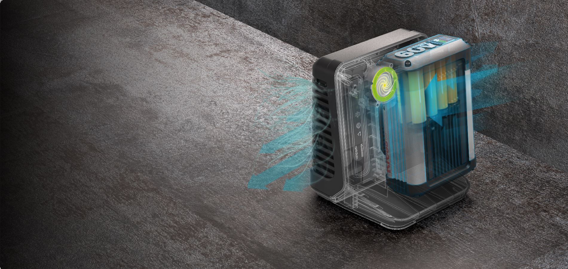 - Temperatur Management Durch aktive Luftkühlung werden die Zellen gekühlt, und der Ladevorgang wird beschleunigt.